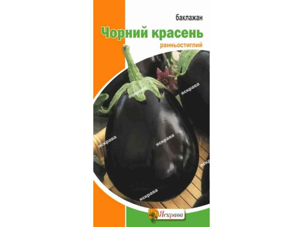 Баклажан Чорний красень класичної форми-висота сорту - 60-80 см,період дозрівання баклажанів - 110-140 днів,врожайність висока - до 6 кг з куща,плоди великі - вагою близько 200 г,висадка насіння на розсаду починається в лютому,пересадка розсади в ґрунт - у кінці травня.вирощуються розсадним способом.