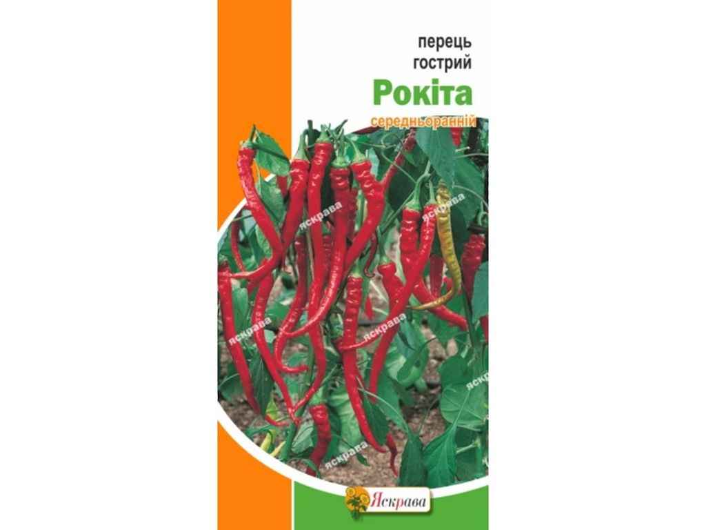 Урожайний сорт із середнім терміном дозрівання - перець гострий Рокіта. Рослина з компактним стеблом і подовженими плодами насичено-червоного відтінку привабливо виглядає на городній ділянці. Кущики компактні, сильні, висотою до 45 см,плоди у вигляді стручка, гладкі, масою більше 20 г,вегетаційний період триває близько 135 днів,відмінно переносить прохолодну погоду.Найкраще посівні роботи починати за кілька днів до кінця лютого або на початку березня.