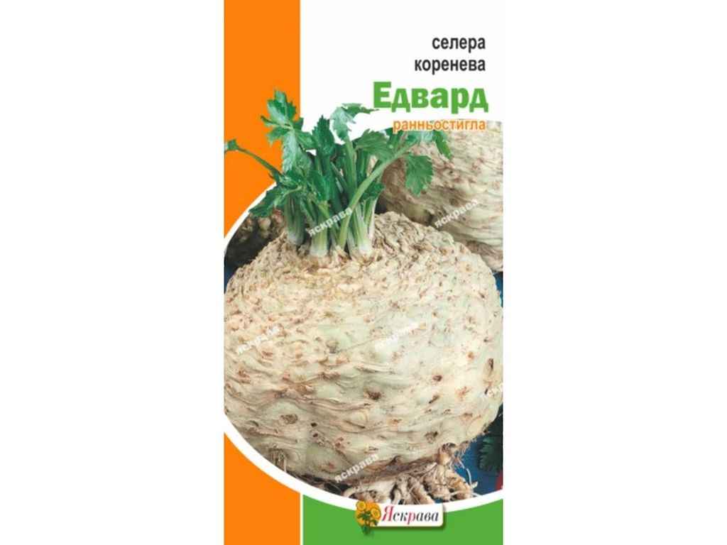 Селера Едвард -корінь округлої форми,маса 300-400 г, дозрівання середньораннє.Для селери потрібно створити сприятливі умови, посів проводять в лютому-березні, використовуючи ящик з поживним субстратом. Перед цим посівний матеріал варто проростити.