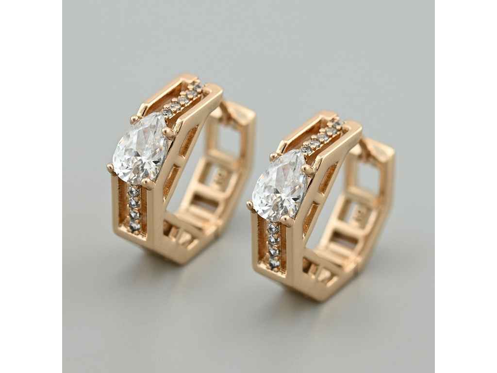 Сережки англійська застібка Лорена 55723 17*5мм білі фіаніти 5,0г позолота 18К ТМ XUPING