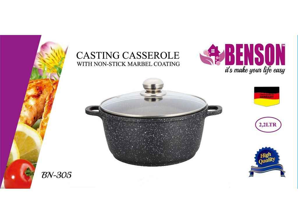 Каструля 2,2л мармурове покриття, скляна кришка BN-305 ТМ BENSON