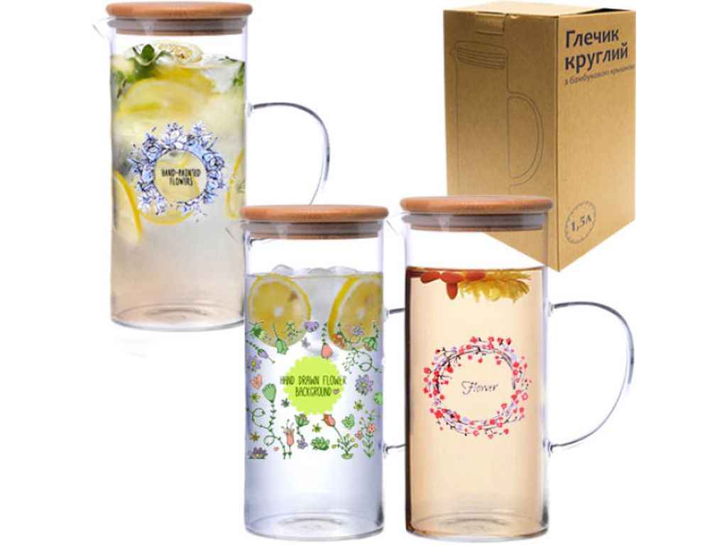 Глечик 1,5л 9030-2 круглий з бамбуковою кришкою ТМ SNT