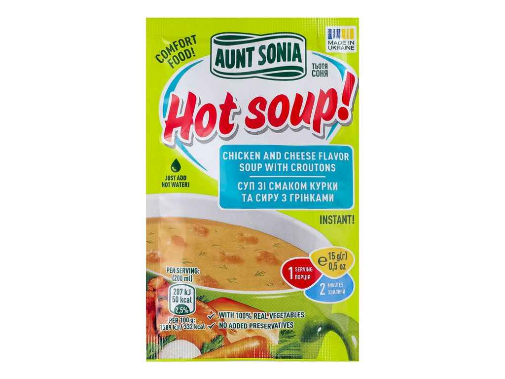 Суп швидкого приготування 15г зі смаком курки та сиру з грінками ТМAUNT SONIA