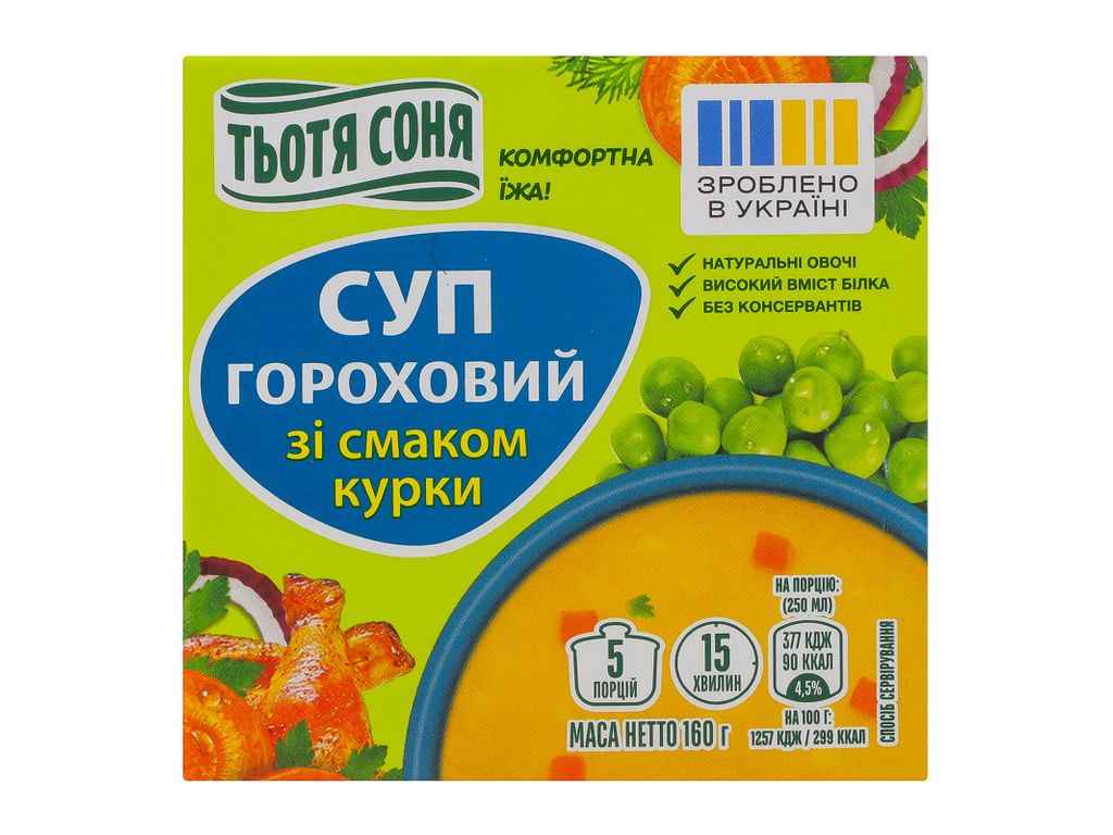 Суп 160г гороховий зі смаком курки ТМAUNT SONIA / ТЬОТЯ СОНЯ