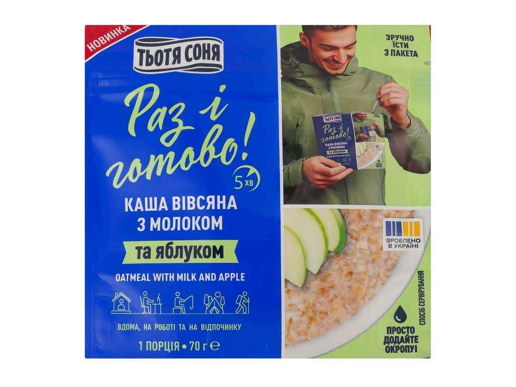 Каша швидкого приготування 70г з молоком та яблуком вівсяна ТМAUNT SONIA