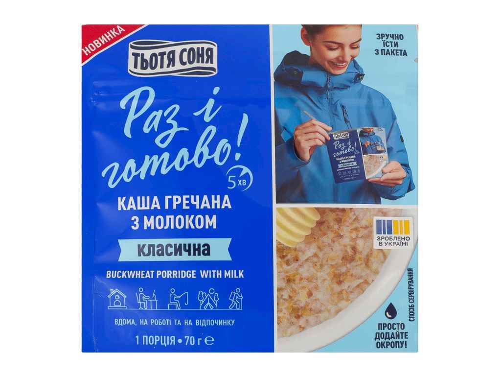 Каша швидкого приготування 70г з молоком гречана ТМAUNT SONIA