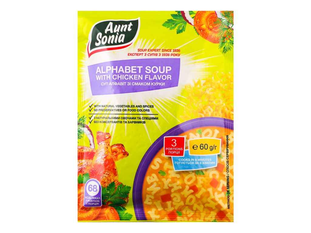 Суп швидкого приготування 60г Алфавіт зі смаком курки ТМAunt Sonia