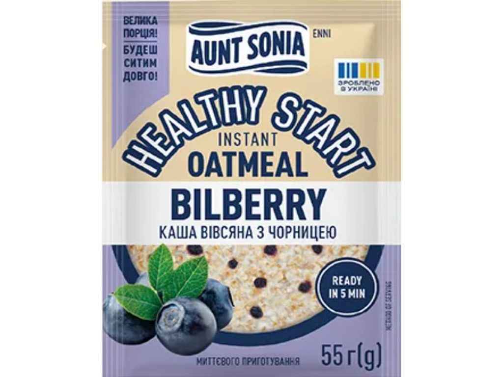 Каша швидкого приготування 55г з чорницею вівсяна ТМAUNT SONIA