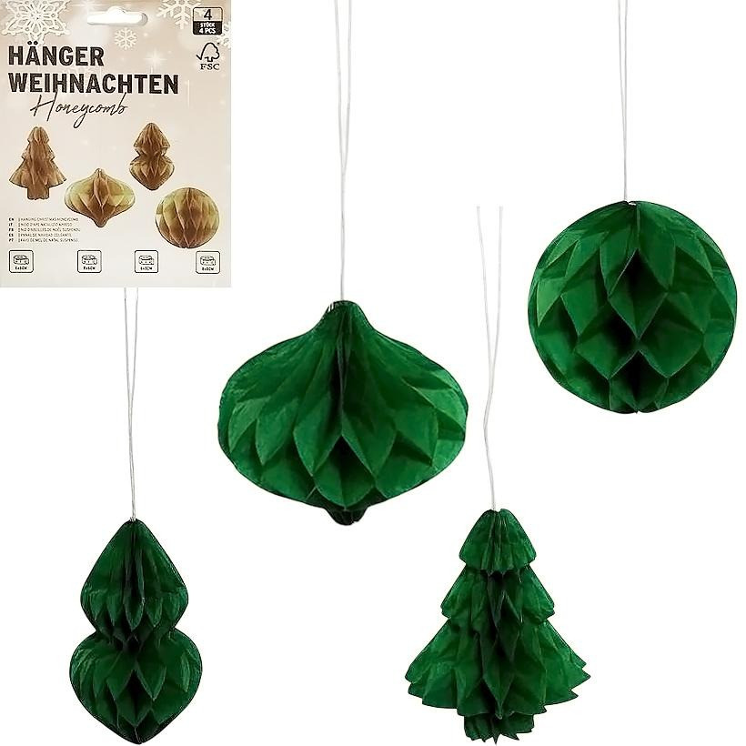 Набір підвісних паперових новорічних прикрас "Зелені фігури" CG-2, 4 шт