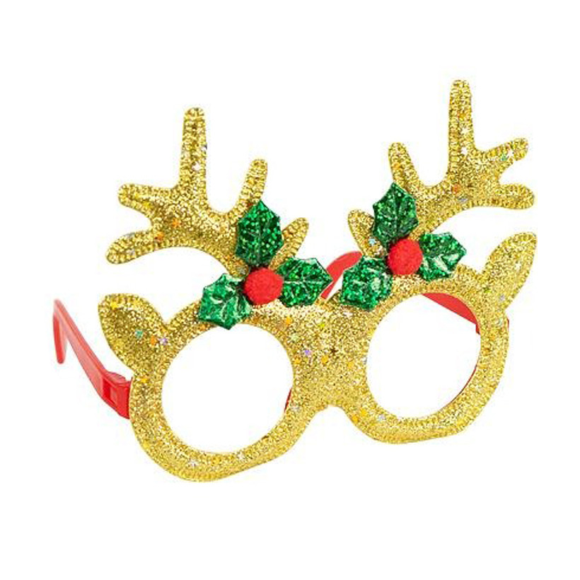 Новорічні окуляри без скелець із декором у вигляді блискучих ріжок та святкових елементів. Прикрашені паєтками й глітером, створюють веселе новорічне настроювання та підходять для фотосесій, вечірок і карнавальних костюмів. Виготовлені з легкого пластику. Розмір: ширина 14 см, висота 13 см, діаметр оправи 6 см, отвір 4,5 см. Зручно сидять і підходять як дітям, так і дорослим.