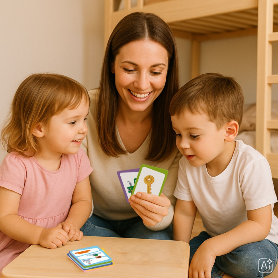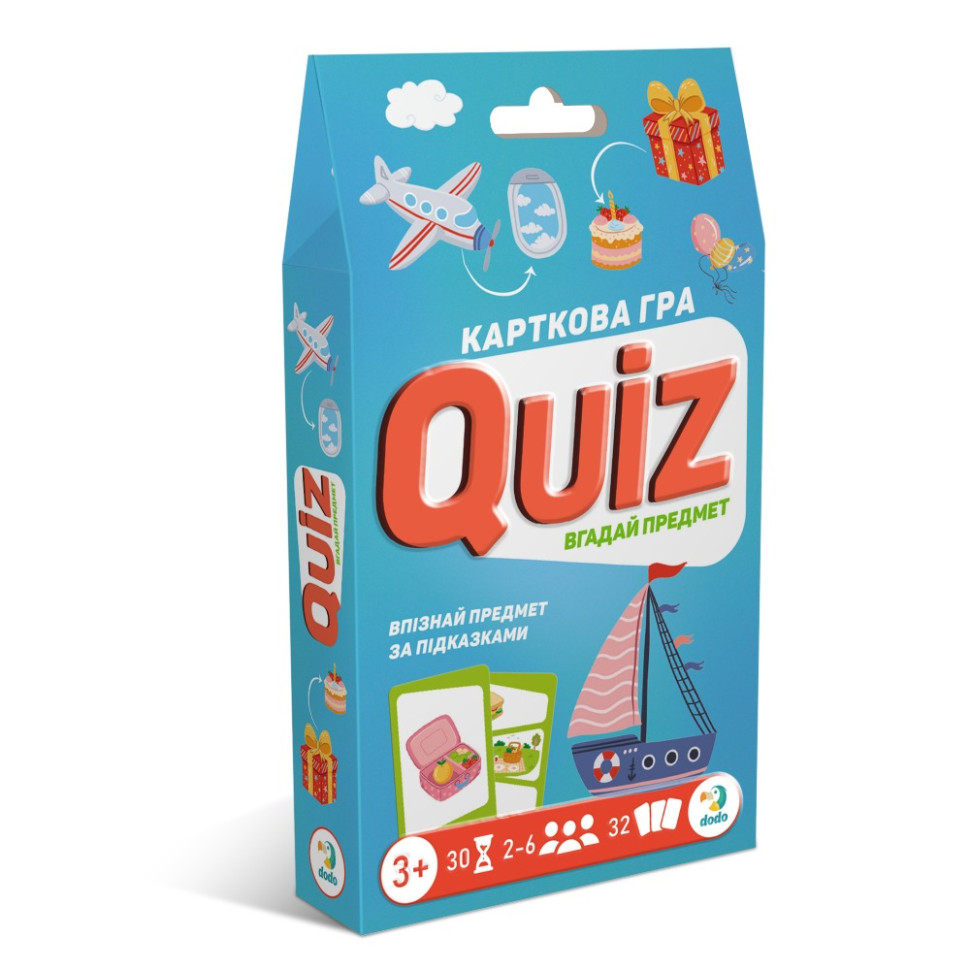 Вікторина: Вгадай предмет! — це захоплива карткова гра, яка перетворює розгадування загадок на веселу пригоду! Твоє завдання — за трьома підказками на картці здогадатися, про кого або що йде мова. Кожна правильна відповідь наближає тебе до перемоги.Як грати:Перемішай карти та поклади їх стосиком «загадками» догори.Тягни карту по черзі. На кожній картці три зображення слугують підказками.Уважно розглянь підказки та спробуй відгадати, про який предмет або кого йде мова.Здогадався? Перегорни картку, щоб перевірити відповідь. Якщо вона правильна — картка твоя!Гра розвиває увагу, логіку, спостережливість та кмітливість, роблячи процес навчання веселим та захопливим.