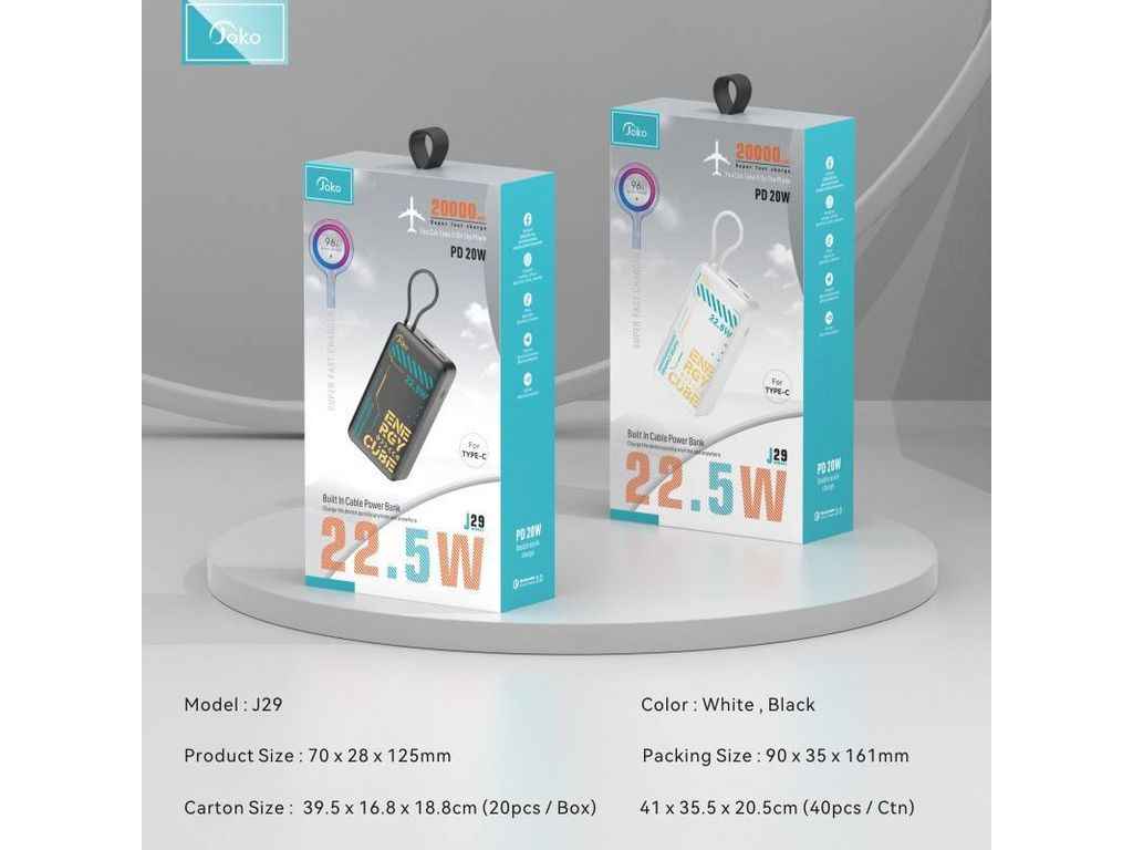 Power Bank 20000mAh J29 PD20WQC22.5W (Чорний) ТМ JOKO