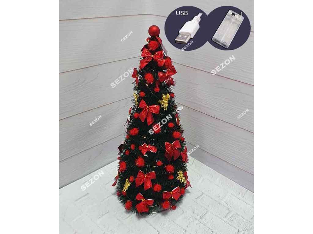 Ялинка каркасна червоний 55см з гірляндою роса на батарейках USB ТМ КИТАЙ