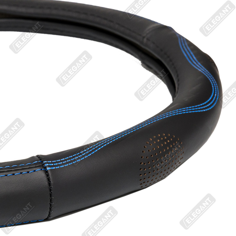 Чохол на кермо шкіра "S" (36см) чорний Elegant 105799 прошитий синьою ниткою/біла основа/4 шва(8,5см