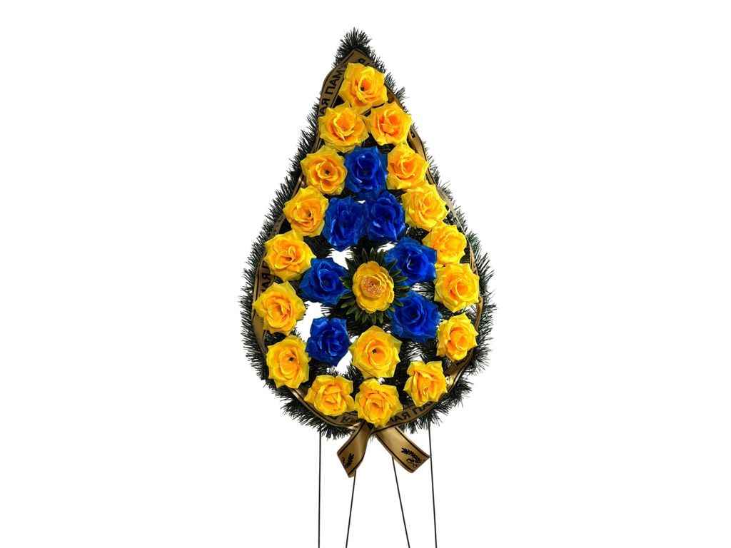 Вінок похоронний Троянди 130х50см жовто-блакитний ТМ Memori