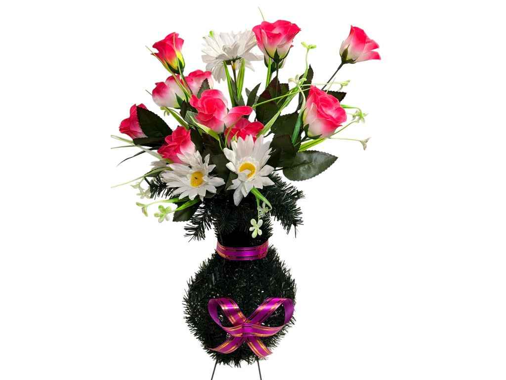 Ваза з квітами Троянди з ромашкою рожево-білий ТМMemori
