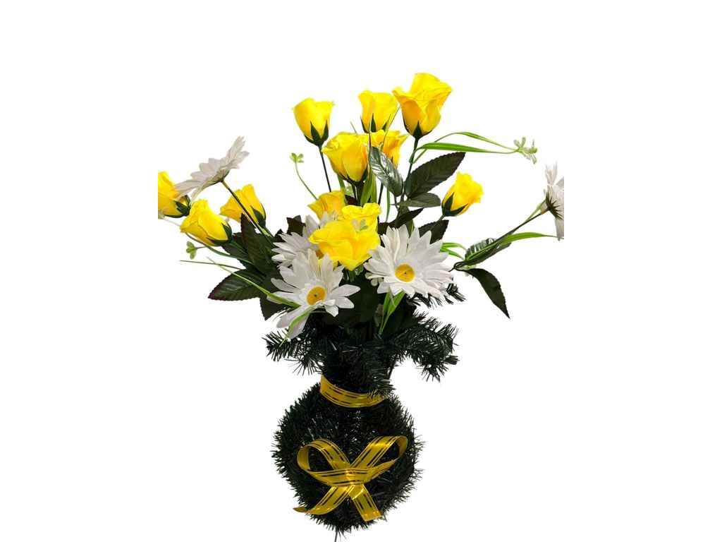 Ваза з квітами Троянди з ромашкою жовто-білий ТМMemori