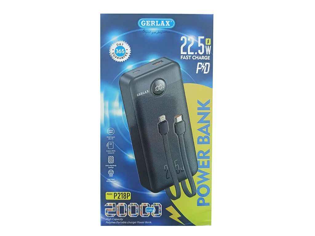 Power Bank 20000mAh P218P 1USB/QC3.0/PD22.5W/LED дисплей/кабель (Type-C/Lightning) чорний ТМ Gerlax