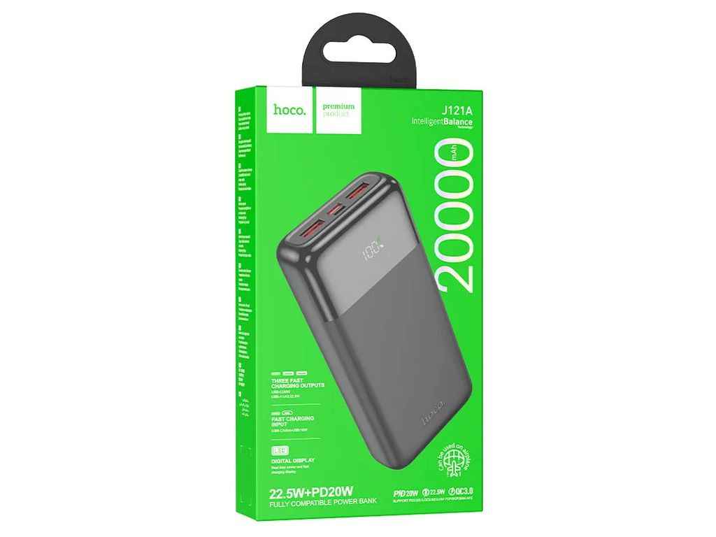 Power Bank 20000mAh J121A 3A/2USB/QC3.0/22.5W/PD20W/LCD дисплей (input micro, Type-C) чорний ТМ Hoco