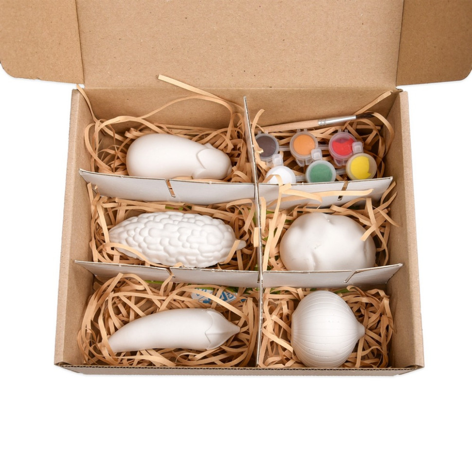 Перетворіть звичайний гіпс на власний маленький город, наповнений яскравими кольорами! Набір Гіпсові Розмальовки «Розфарбуй овочі» дозволить вашій дитині поринути у веселий світ творчості та розфарбувати 5 гіпсових фігурок у вигляді улюблених овочів: баклажана, цибулі, картоплі, перцю та момордики.