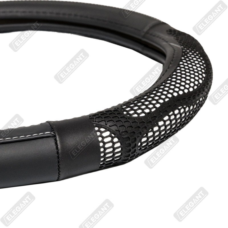 Стильний та зручний чохол на кермо Elegant Plus виготовлений із високоякісної натуральної шкіри з перфорацією, що забезпечує приємне на дотик покриття та чудову вентиляцію. Міцна конструкція гарантує надійний захист керма від стирання й пошкоджень, а точна посадка забезпечує комфортне утримання. Легко встановлюється, підходить для більшості автомобілів із кермом розміру M.