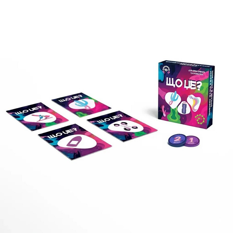Пізнавально-вульгарна гра для компанії «ЩО ЦЕ?» — це смілива та весела розвага для дорослих, яка перевірить вашу кмітливість, почуття гумору та… уяву. Гравцям пропонується визначити, який саме секс-девайс зображений на картці, або видати найсмішніший жарт на цю тему.На кожній картці є картинка та правильна відповідь на звороті, тож ніхто не залишиться в невіданні.Як грати:— за правильну відповідь гравець отримує фішку «2 ділдо»— за найкращий жарт — «1 ділдо»Перемагає той, хто збере найбільше «ділдо».Гра ідеально підходить для компанії друзів, вечірок та атмосферних посиденьок, де можна відпустити серйозність та просто добре повеселитися.Кількість гравців: від 2 осібВік: 18+