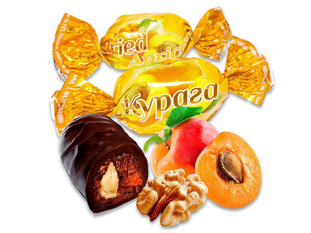 Цукерки глазуровані 1кг КУРАГА з горіхом в шоколаді ТМАМЕЛІЯ