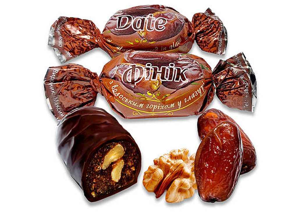 Цукерки глазуровані 1кг ФІНІК з горіхом в шоколаді ТМАМЕЛІЯ