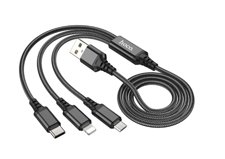 Кабель USB 4в1: HOCO X76 3in1 lighting-microUSB-2хType-C 1m Black