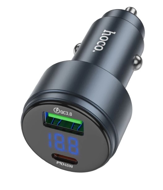 Вольтметр у прикурку 12V/24V на 1Type-C/1USB PD30W+QC3.0 (Сірий) Hoco Z57B
