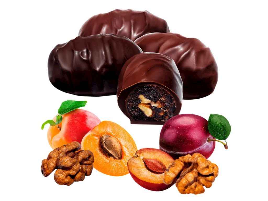 фруктові цукерки з волоським горіхом вшоколаді, екран 1кг