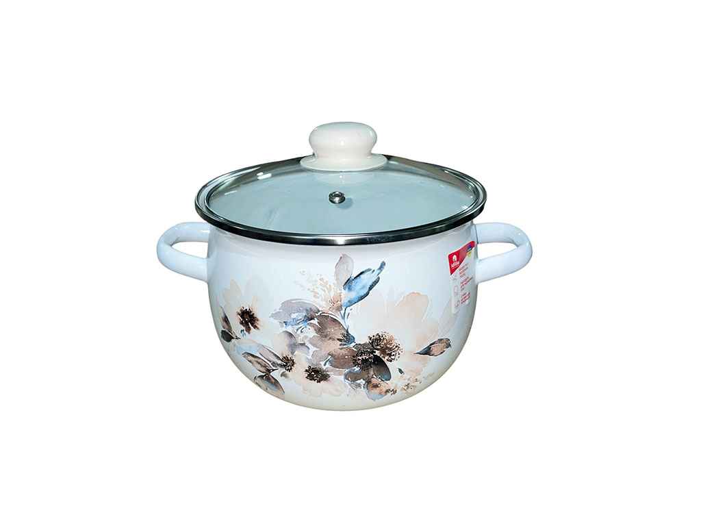 Каструля ем. 3,5л /2 сферична з н/ж обідком та скляною кришкою Жасмін (біла) I61913/2 ТМ IDILIA