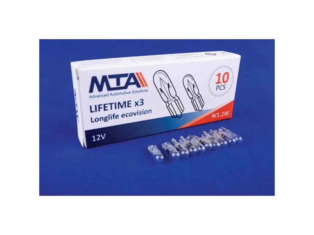 Автомобiльна лампа 12V безцокольна W1.2W 2 contact картон (10шт) ТМMTA