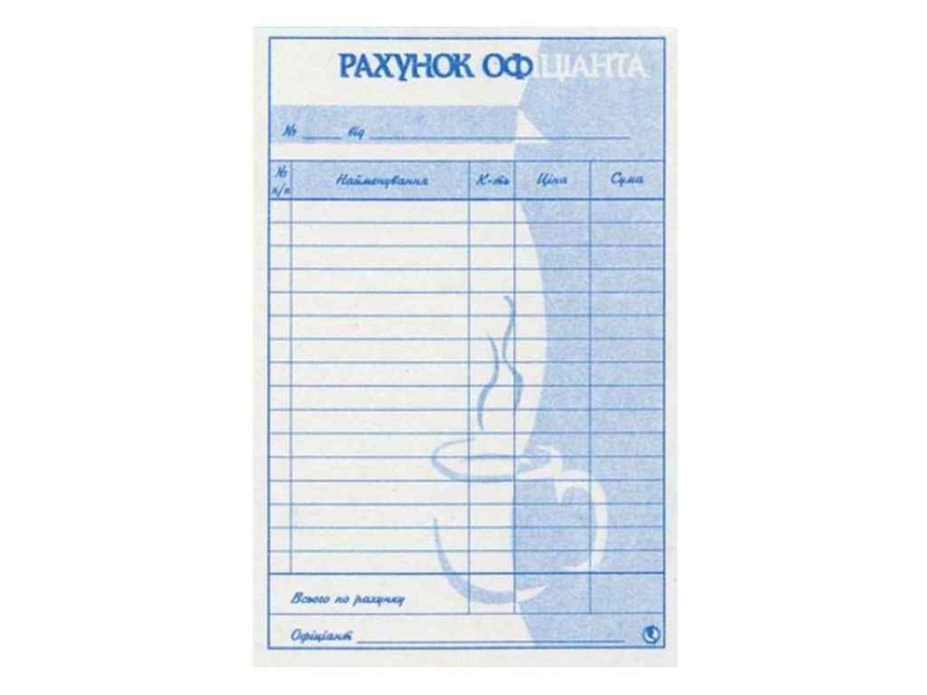 Рахунок офіціанта А-6 (газетка.) ТМ ЛЮКС КОЛОР