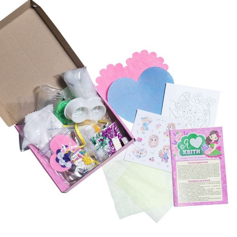 Впорається кожен! Адже усі дії покроково описані в фотоінструкції, а якісні складові набору зроблять творчий процес легким і комфортним. В процесі виконання дізнаєтеся різноманітні техніки хенд мейд і створите власноруч неймовірно красиві та корисні вироби: підставку та чохол під чашки, подушку з фетру, сережки, брошки, свічки, фіалки з паєток, релакс-розмальовки тощо.Презентувати готові шедеври можна в яскравому упакуванні цього ж набору, ніжно рожевого кольору. Такий великий набір для творчості — це гарне рішення для подарунка на будь-які свята для любителів рукоділля й для тих, хто обожнює квіти. Готові шедеври доповнять образ, додадуть затишку і стануть теплим подарунком для рідних і знайомих.У наборі: паєтки, бісер, дріт, пластиковий стаканчик, органза, стрічки, гіпс, синтепон, намистини, нитки, гачок для в’язання, голка, швензи, кільця, деталі з фетру, шпилька для брошки, волосінь, парафін, барвник для парафіну, блістерна форма, фітиль, наліпки, релакс-розмальовка, інструкція.