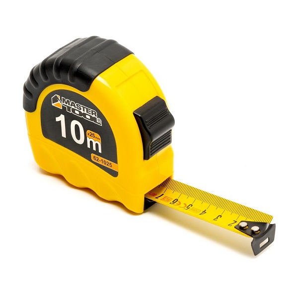 Рулетка 10м*25мм, фіксатор полотна нейлонове покриття, Mastertool (6шт/уп)