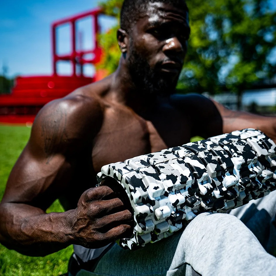 Високоякісний масажний ролер Sveltus Camouflage має текстуровану поверхню, завдяки якій масаж виходить найефективнішим. Ролер стимулює тканини перед тренуванням та допомагає відновитися після навантаження, також він знімає біль у м'язах та покращує кровотік. Спеціальна конструкція ролера Sveltus Camouflage допомагає відтворити ті ж відчуття, що й від рук масажиста. Без фталатів та неприємного запаху.
