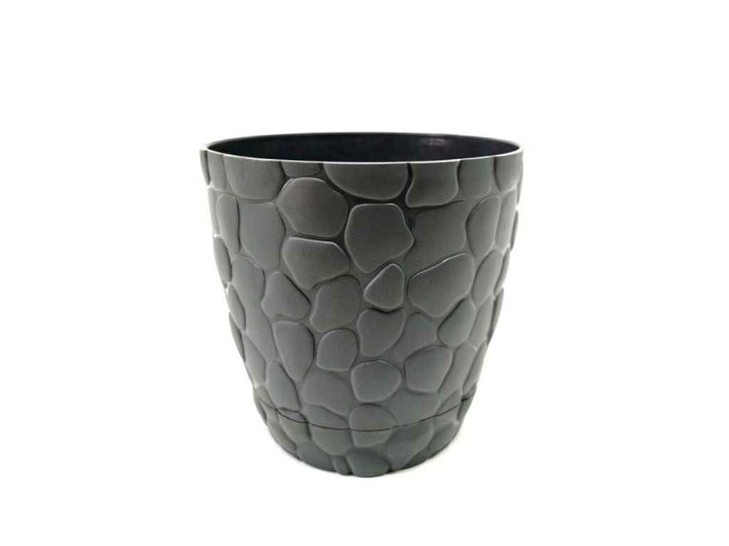 Квітковий горщик виготовлений із якісного пластику турецького виробництва. Має округлу форму, декорований технікою капітоне. Горщик комплектується підставкою, що виконує роль захисту від протікання води під час поливання. Горщик зі знімним піддоном.