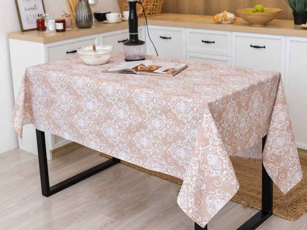 Скатертина 1,8х1,5м бавовняна Вензель (бежевий) ТМ ПЛАТКИ-ОПТ
