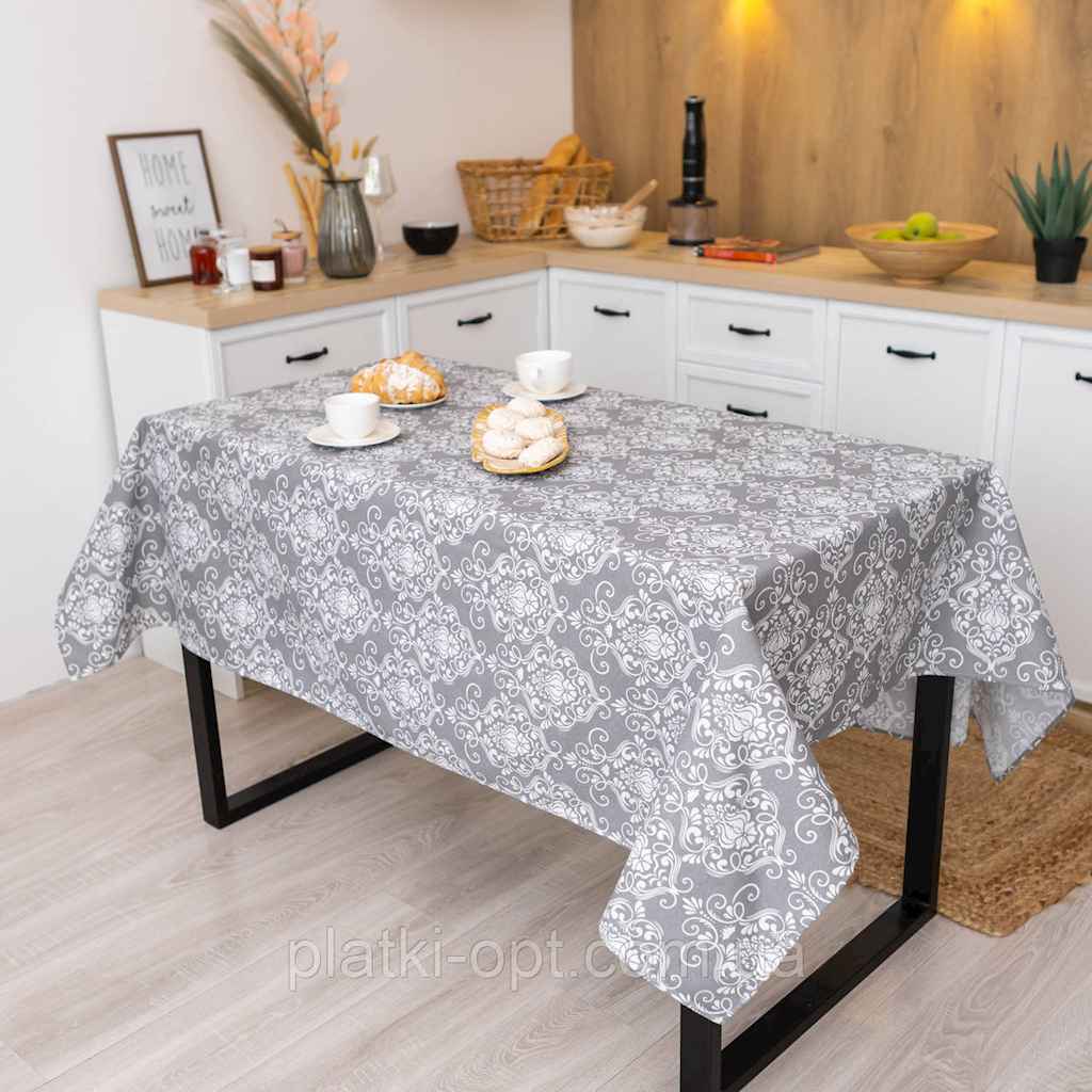 Скатертина 1,1х1,5м бавовняна Вензель (сірий) ТМ ПЛАТКИ-ОПТ