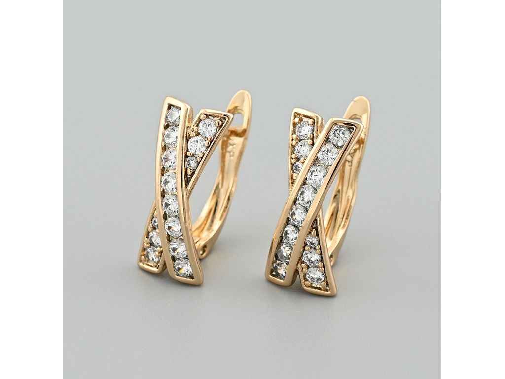 Сережки Фекла 43524 17*7мм білі фіаніти 2,9г позолота 18К ТМ XUPING