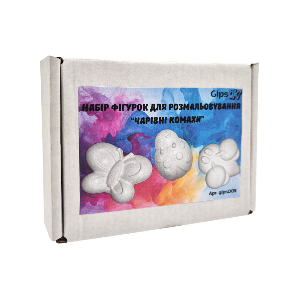 Набір фігурок для розмальовування «Чарівні комахи»Творчий набір «Чарівні комахи» - це чудова можливість для дітей і дорослих проявити фантазію та створити власні яскраві шедеври. У наборі - три фігурки з гіпсу у вигляді милих комах, які легко розмальовуються фарбами, фломастерами або олівцями.У комплекті:фігурка Метеликфігурка Жукфігурка СонечкоФігурки виготовлені з якісного гіпсу, мають приємну на дотик поверхню та чіткі деталі, що робить процес розфарбовування легким і захопливим. Набір сприяє розвитку творчого мислення, дрібної моторики, посидючості та уяви.Ідеально підходить для творчих занять вдома, у дитячих садках, школах або як оригінальний подарунок.Переваги набору:натуральний та безпечний матеріалпідходить для різних технік розмальовуваннярозвиває творчі здібностічудова ідея для подарункаСтворіть власну колекцію чарівних комах разом із цим набором!