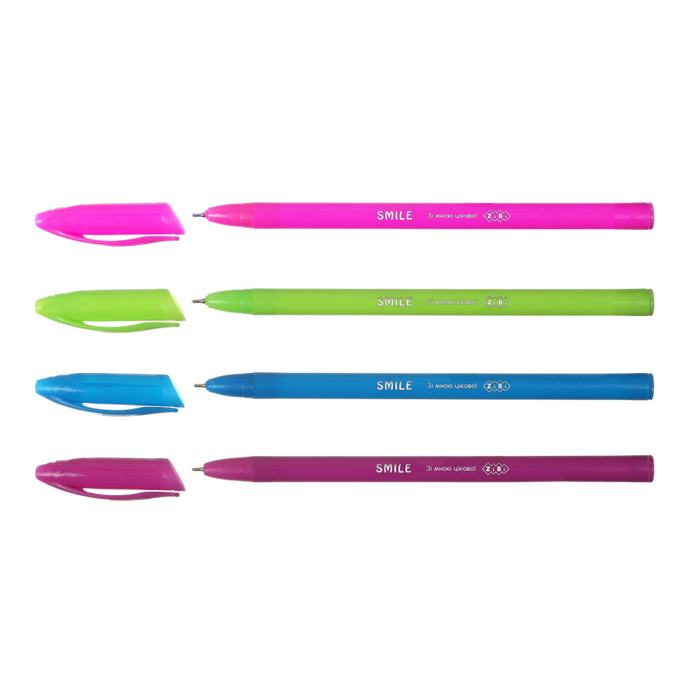 Масляна неавтоматична ручка SMILE від ZiBi – це чудовий настрій та легкий лист як для дітей так і для дорослих! Підходять для використання вдома, у всіх навчальних закладах та навіть офісах!товщина лінії листа 0,5 ммголковий наконечник для додаткового захисту від висихання чорнилачорнило на масляній основі забезпечує м'який, плавний та легкий лист, не вимагаючи натиску на папір та залишаючи чітку лініюшвидко висихає і не розмазуєтьсямає помірний рівень витратиколір чорнила: синійковпачок з кліпом у колір корпусутонка кругла форма корпусу забезпечує комфортне захопленнякорпус із пластику яскравих неонових кольорів (рожевий, салатовий, бузковий, блакитний) та срібним тисненням – привертає увагу та радує погляд
