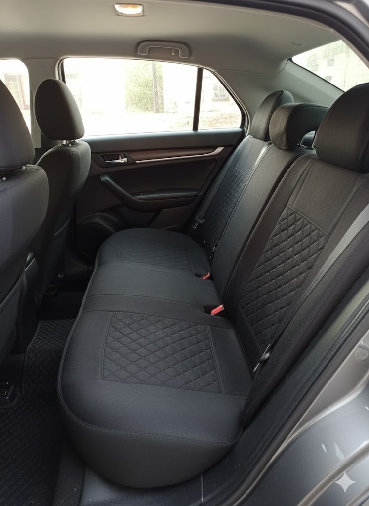 Чохли_ ''В'' (1+1) чорні ( РОМБ - Сіра середина)"Автосвіт"MAX" (2-а Підголов Спинка і сид.окрем)