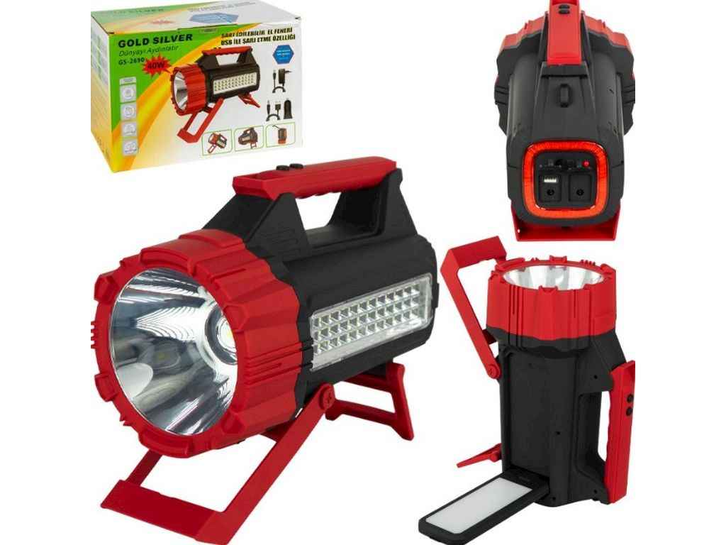 Ліхтар-прожектор GOLD SILVER GS-2690 40W з далеким спрямованим променем і бічною SMD-панеллю — універсальне освітлення для дому, дачі, гаража, роботи, відпочинку та надзвичайних ситуацій. Яскравий, легкий і надійний.