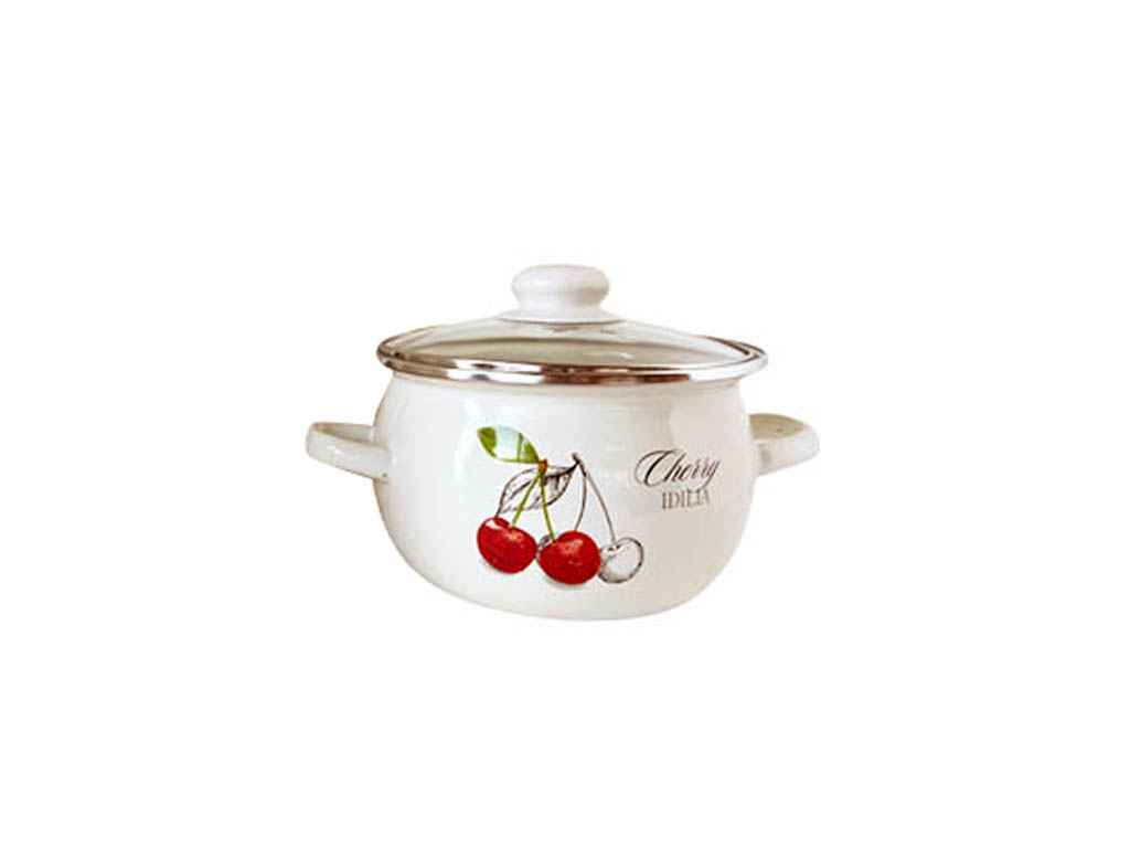 Каструля ем. 2,5л /2 сферична з н/ж обідком та скляною кришкою Вишня Ідилія (молочна) I61911/2 ТМ IDILIA