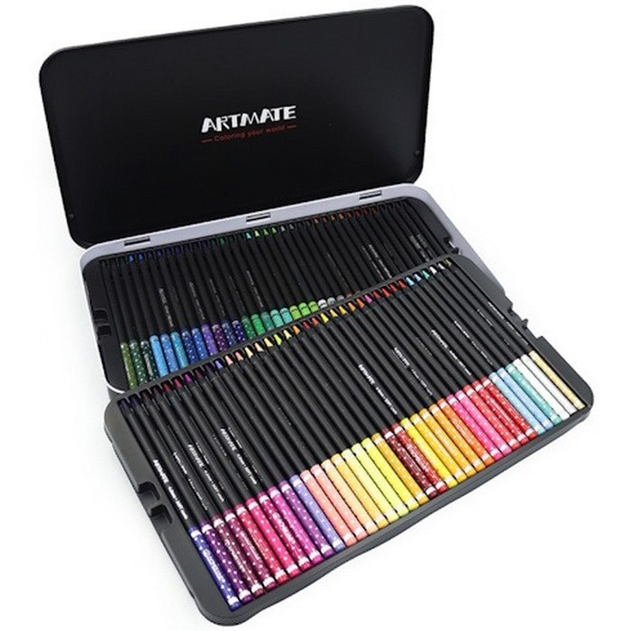 Преміальна металева упаковка: Стильний та міцний металевий бокс не лише захищає олівці від механічних пошкоджень, а й дозволяє зручно організувати робочий простір. Олівці розкладені по рівнях, що полегшує пошук потрібного відтінку.