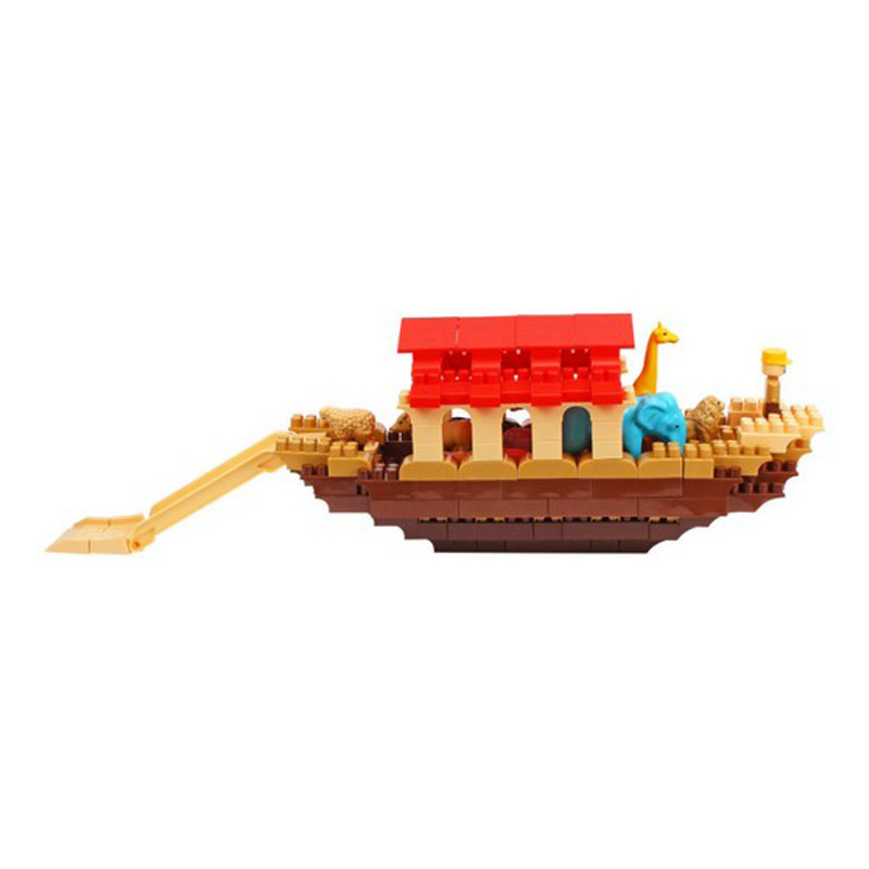 Дитячий набір конструктора "Корабель" - захопливий ігровий комплект для творчої та сюжетної гри.Набір складається з 190 деталей, з яких дитина може зібрати великий міцний корабель із надійним корпусом, просторим будиночком під яскравим червоним дахом та зручним трапом. Трап дозволяє тваринам легко заходити на борт і спускатися назад на сушу, роблячи гру більш реалістичною.До комплекту входять 10 фігурок тварин: жирафа, слон, лев, пантера, носоріг, кінь, вівця, свиня, коза та корова. Також у наборі є фігурка Ноя, який керує кораблем і допомагає всім тваринам вчасно піднятися на палубу.Гра з конструктором розвиває уяву, дрібну моторику, просторове мислення та логіку, заохочує до створення власних історій і знайомить дитину з тваринами. Ідеально підходить для тривалої захопливої гри як самостійно, так і разом із друзями або батьками.