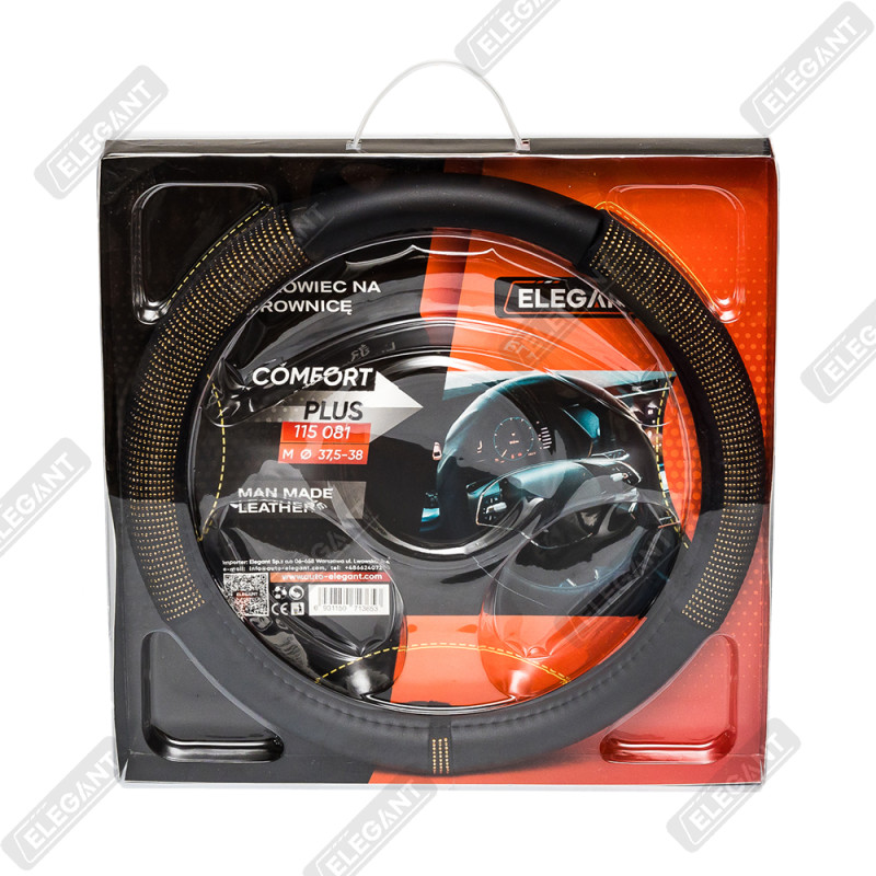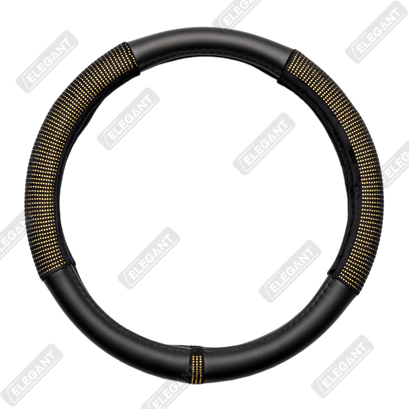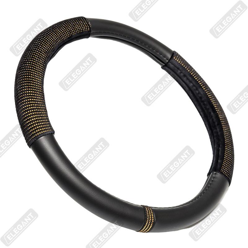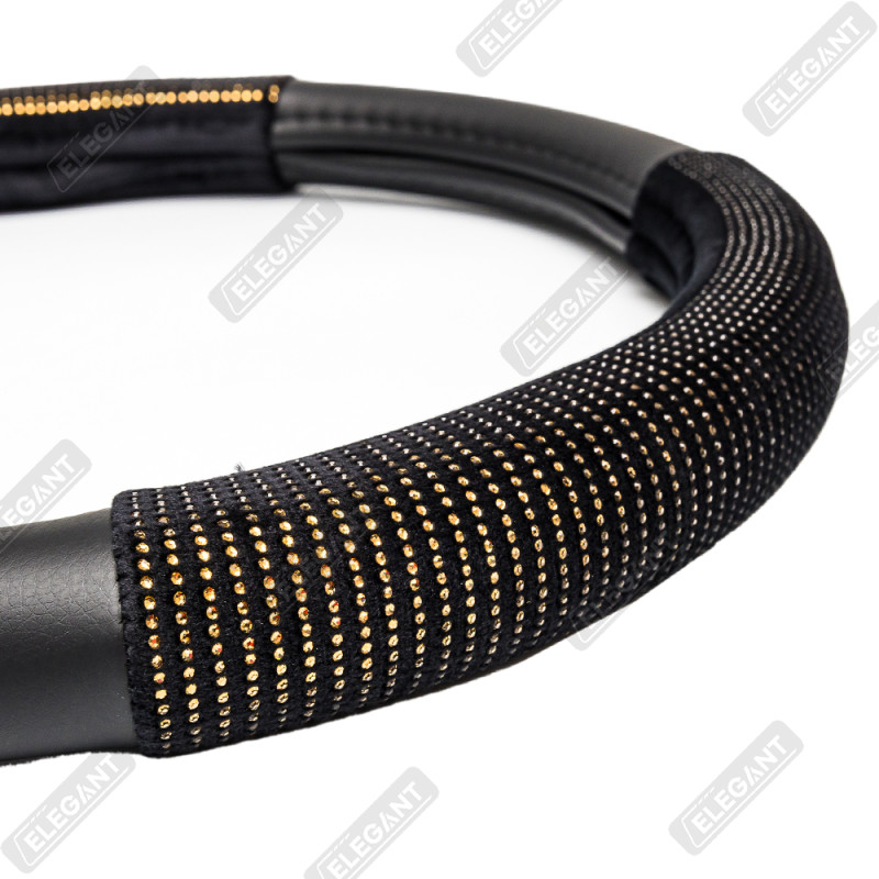 Чохол на кермо шкіра "М" (37-38см) чорний Elegant 115081 вставка з золотими стразами