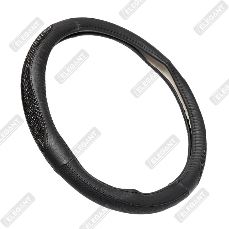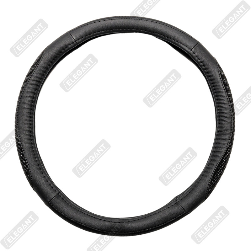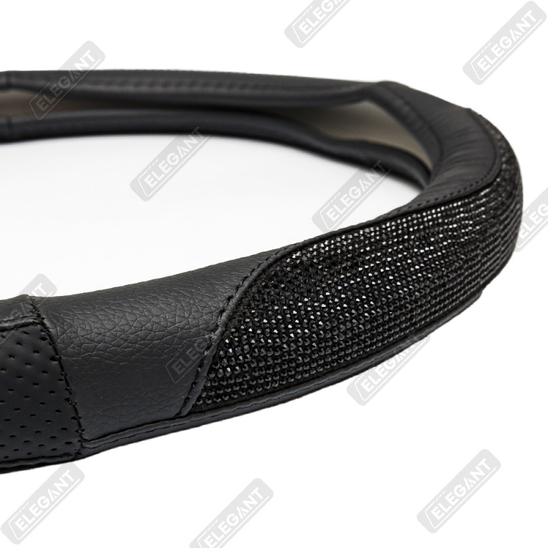 Чохол на кермо шкіра "М" (37-38см) чорний Elegant 115161 вставка з чорним камінням